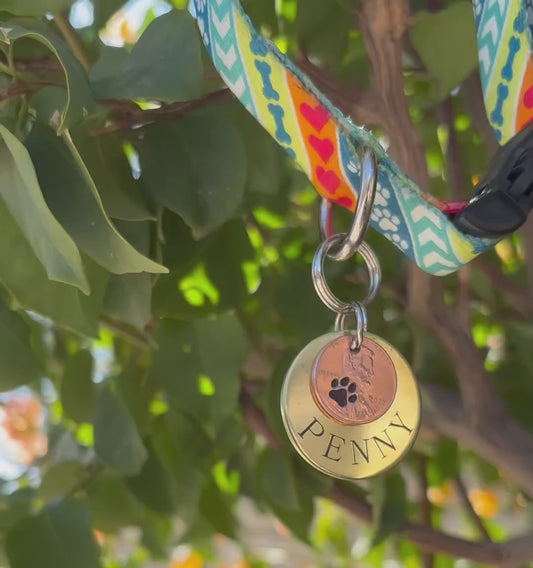 Our DOGaholics Collection features handcrafted pet ID tags that celebrates our obsession with our dogs showcasing playful elements like dog paw prints, dog bones and love!