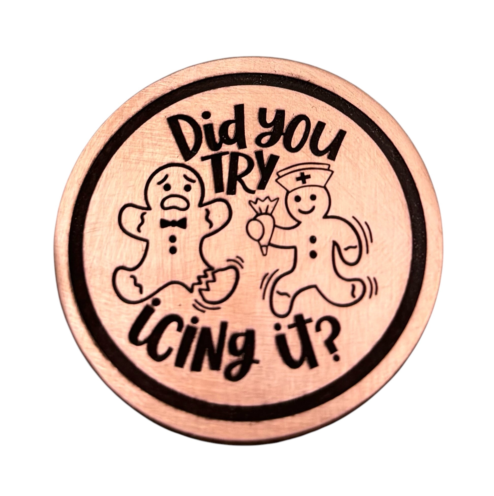 Keep in mind that the design and text will be scaled up or down depending on the size you picked. Your choice may look a little different size wise than the pictures shown.
